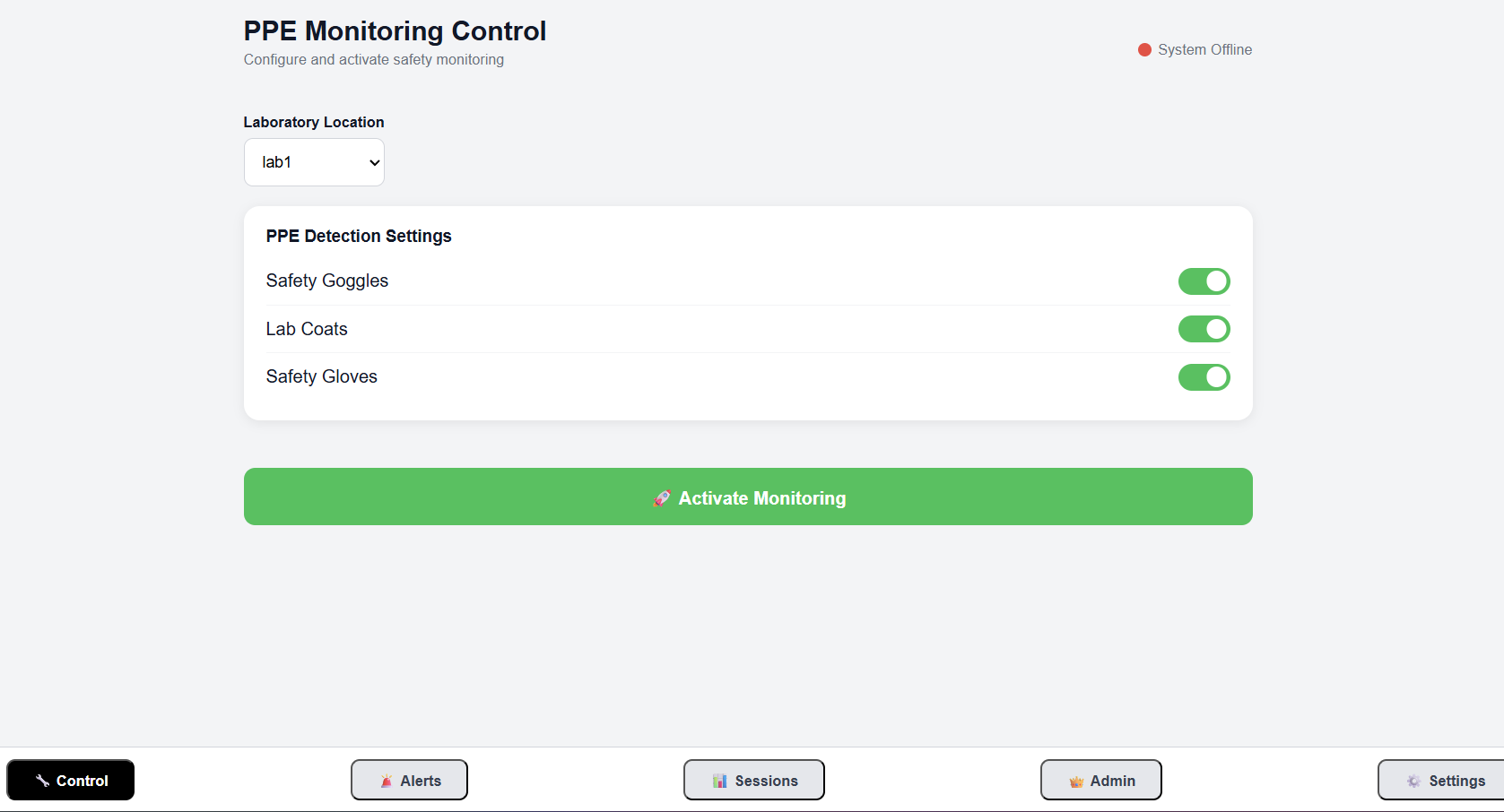 Full-Stack Laboratory PPE Detection Using Deep Learning
